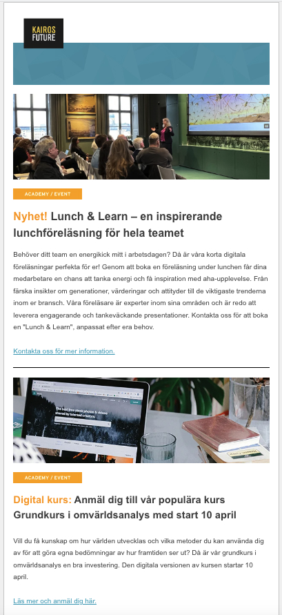 Nyhetsbrev för Kairos Future.